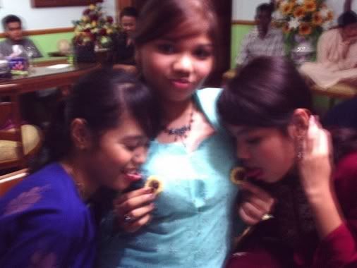 Wello.. im back. wahahas.. im crazie todae. otak tak centre. wakaka~.. erm. juz now went raya(again!) wif my madrasa mates. (acah gi madrasa kepe? wahaha) ... quite fun yet borin. haha... da fun part was.. my dearest prince sanggup sei anta aku gi uma kwn aku kat fajar. ampai btol2 depan gate kwn aku. woohoo! lup ya darlink~ hees. die bgn pagi2, siap2 beh gi wait aku kat fajar lrt. beh kite jln same2 gi uma kwn aku. n tu pon kwn pri dier. erm.. tiny s'pore. wee`.. erm.. then me and my fren made our way to segar lrt to mit da rest. we're da last two. hees.. then.. made our way to ustaz's house. joke ard then went to i duno hu's house. then went home. wakakakkakaa... so funny ar. 2 houses onie. aku ade la dress up maha dress up nye. ;o) but still good ar im home. tired ar todae. duno y. mondae most probably meeting my prince. wee`. miss him ar. hehehe.. then fridae mayb goin to watch movie wif him, elfie, aisha, yati(3d) n matae die.. triple date. waahaha.. got such word meh? hmmz.. hee`. gonna watch shutter. yeehaa~ so far i asked my frenz, ALL said it was scary. very scary indeed. so muz watch. hahas.. cant wait for that dae arh. btw aisha said she gonna collect da pics todae. wee`. hope to mit her on mondae together with my prince. wanna c da pics. hee! i'll upload onie da nice2 one hor. hahas..